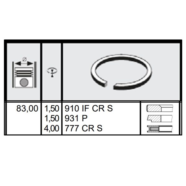 PISTON RINGS SET FOR CITROEN PEUGEOT XU5M 180A D2C XU5J ENGINES STD 83.00MM 1 CYL
