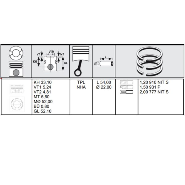 PISTON AND RINGS SET FOR BMW N55 3.0L 84.50MM Φ22MM OVR 1 SET