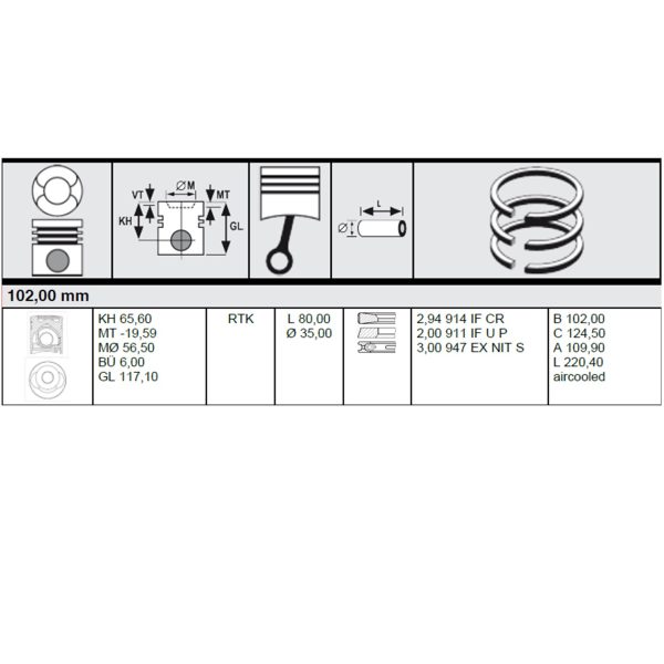 PISTON + LINER FOR DEUTZ FL914 F3L914 F4L914 F5L914 F6L914 102.00MM 1 CYL