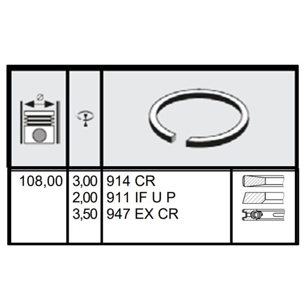 PISTON RING SET FOR KHD BF4M BF6M ENGINE STD 108.00MM 1 CYL