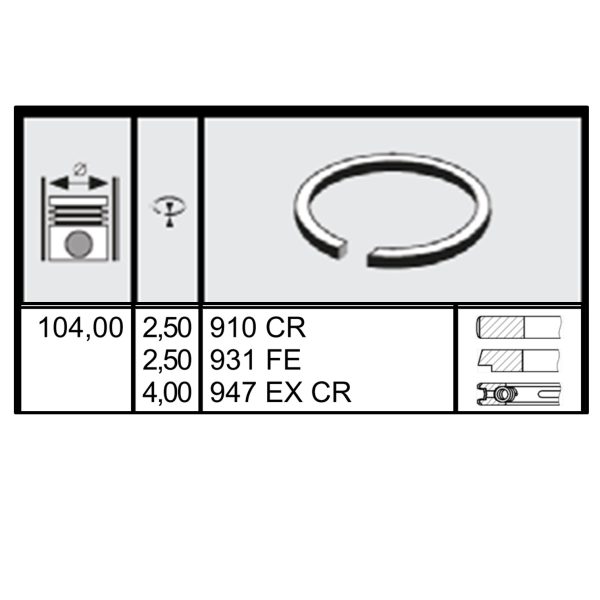 PISTON RINGS SET FOR FIAT-IVECO STANDARD 104.00MM 1 CYL 8030.05 8035.05 1 CYL SET