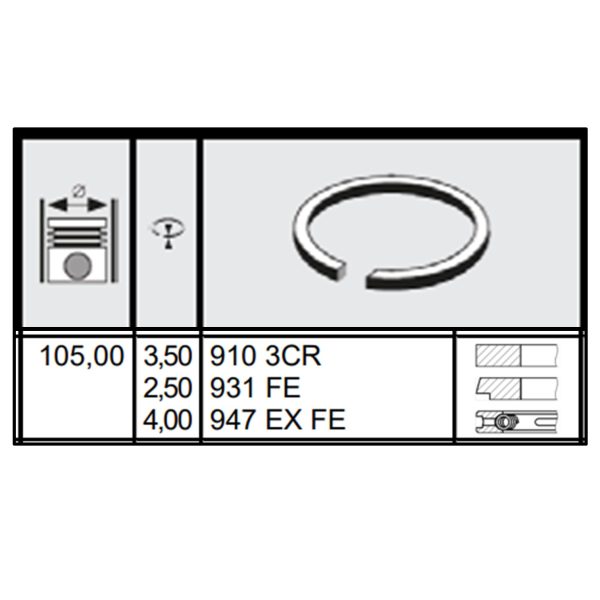 PISTON RING FOR ISUZU 6BG1-TC DIESEL ENGINE (6 CYL. SET) STANDARD 105.00MM.