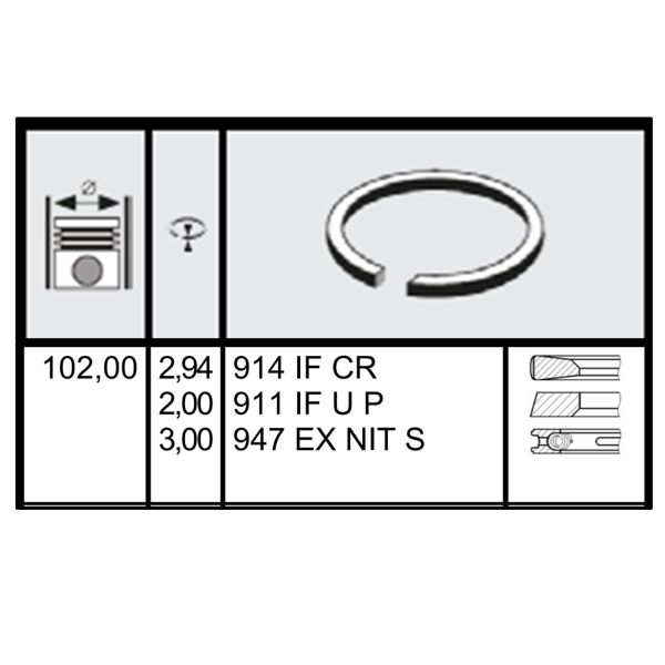 PISTON RING FOR DEUTZ BFL913 DIESEL ENGINE STANDARD 102.00MM 2.94X2.00X3.00 1 CYL