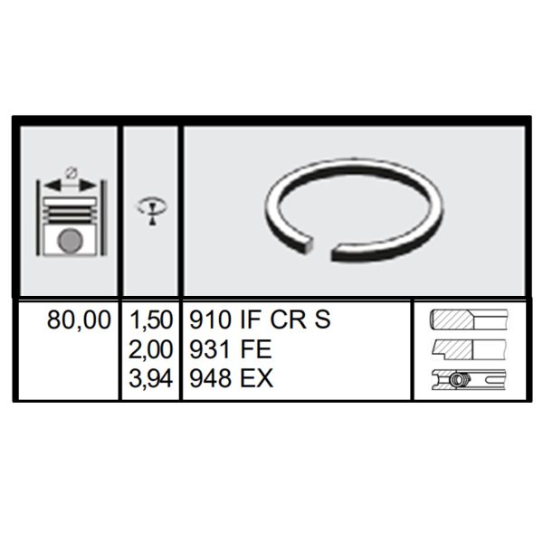 PISTON RING FOR FIAT 1969-1987 128 126 RITMO 1.50X2.00X3.94 1.1L STD 80.00MM
