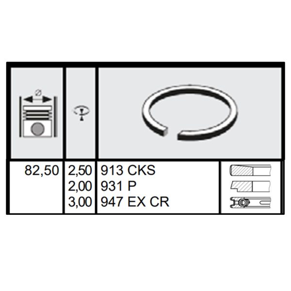 PISTON RINGS SET FOR FORD FOCUS 1.8L BHDA BHDB STANDARD 82.50MM 1 CYL