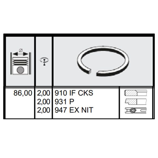 PISTON RINGS SET FOR CITROEN FORD 2.0L ENGINES STD 86.00MM 1 CYL
