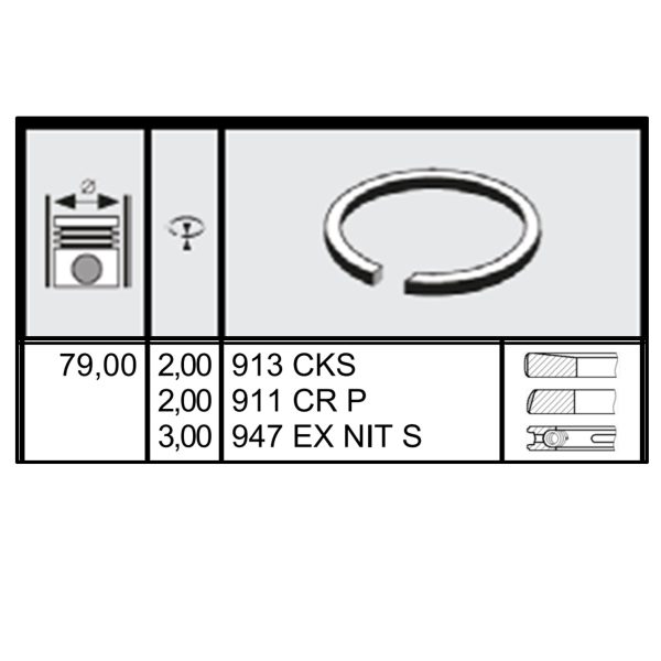 PISTON RING FOR OPEL A17/ Z17 SERIES ENGINES DIESEL STANDARD 79.00MM.1 CYL