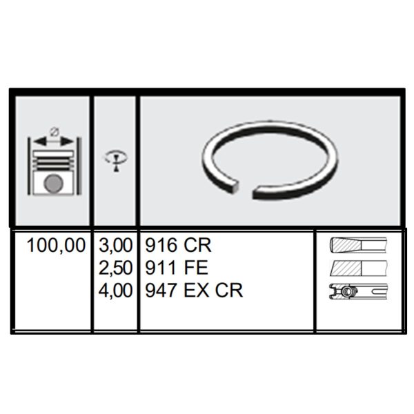 PISTON RING FOR PERKINS 1004-4T/TW 1006-6T/TW C4.40 T4.40 STANDARD 100.00MM 1 CYL<