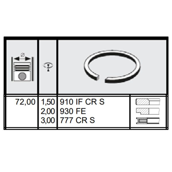 PISTON RINGS SET FOR PEUGEOT CITROEN TU1K/M/Z ENGINE 72.00MM STD SET FOR 1 CYL