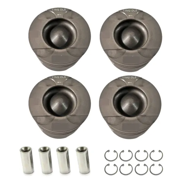 SET FOR 4 PISTONS WITH RINGS INTALLED, PINS AND RETAINERS.
