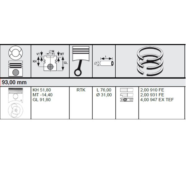 PISTON FOR ISUZU 4JB1 NON-TURBO STD 93.00MM 4SET 2.8L